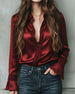 SPECIFIKATIONER Top type: Bluser Stil: Elegant Materiale: Satin Lejlighed: Daglig Halsudskæring: Revers Mønstertype: Ensfarvet Ærmetype: Vidærmet Ærmelængde: Langærmet Pasform: Almindelig Sæson/årstid: Forår,Sommer Detaljer: Snøre Pakken inkluderer: 1 x Bluse STØRRELSESTABEL (cm) Størrelse Buste Længde S 92 65 M 96 66.5 L 100 68 XL 1...