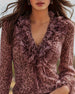Bluse Rynket V-Hals Leopardtryk