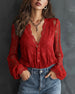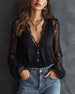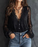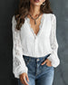 Bluse Knap-Ned V-Udskæring Puf ærme