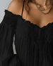 Top Fin Glitter Langærmede Plisseret Rund Hals
