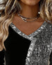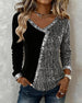 SPECIFIKATIONER Top type: Toppe Stil: Afslappet Materiale: Bomuldsblanding Lejlighed: Daglig Halsudskæring: V-udskæring Mønstertype: Pailletter,Farveblok Ærmetype: Almindeligt ærme Ærmelængde: Langærmet Pasform: Almindelig Sæson/årstid: Efterår,Vinter Pakken inkluderer: 1 x Top STØRRELSESTABEL (cm) Størrelse Buste Længde S 97 65 M 101 66...