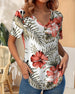 T-Shirt V-Hals Bladtryk Kortærme