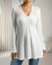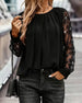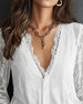 Langærmet Bluse Med Blonder Og V-Udskæring