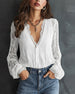 SPECIFIKATIONER Top type: Bluser Stil: Elegant Materiale: Bomuldsblanding Lejlighed: Daglig Halsudskæring: V-udskæring Mønstertype: Ensfarvet Ærmetype: Puf-ærmer Ærmelængde: Langærmet Pasform: Almindelig Sæson/årstid: Forår,Sommer Detaljer: Knapper Pakken inkluderer: 1 x Bluse STØRRELSESTABEL (cm) Størrelse Buste Længde S 92 65 M 96 66.5...