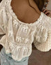 Bluse U-hals Løs Broderet Langærme
