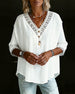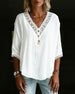 SPECIFIKATIONER Top type: Bluser Stil: Elegant Materiale: Snøre Lejlighed: Daglig Halsudskæring: V-udskæring Mønstertype: Ensfarvet Ærmetype: Almindeligt ærme Ærmelængde: Trekvartærmet Pasform: Almindelig Sæson/årstid: Forår,Sommer Detaljer: Knapper,Snøre Pakken inkluderer: 1 x Bluse STØRRELSESTABEL (cm) Størrelse Buste Længde S 92 65 M ...