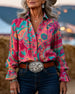 SPECIFIKATIONER Top type: Skjorte Stil: Chic Materiale: Bomuldsblanding Lejlighed: Daglig Halsudskæring: Revers Mønstertype: Tryk Ærmetype: Almindeligt ærme Ærmelængde: Langærmet Pasform: Almindelig Sæson/årstid: Forår,Sommer Detaljer: Knapper Pakken inkluderer: 1 x Skjorte STØRRELSESTABEL (cm) Størrelse Buste Længde S 97 65 M 101 66.5 ...