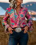 Boheme-Inspireret V-Hals Bluse Med Udsvajede Ærmer