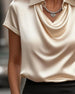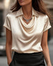 Bluse Satīn Drapéret Halsudskæring Korte Ærmer