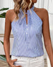 SPECIFIKATIONER Top type: Tank top Stil: Afslappet Materiale: Bomuldsblanding Lejlighed: Daglig Halsudskæring: Halsstrop Mønstertype: Stribet Ærmelængde: Uden ærmer Pasform: Almindelig Sæson/årstid: Forår,Sommer Detaljer: Snøre op Pakken inkluderer: 1 x Tank top STØRRELSESTABEL (cm) Størrelse Buste Længde S 97 65 M 101 66.5 L 105 68 ...
