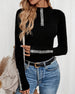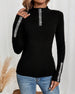 Bluse Med Revers Trekvartærme Kontrastfarve