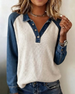 SPECIFIKATIONER Top type: Toppe Stil: Afslappet Materiale: 50% Polyester, 10% Spandex, 40% Kunstig Bomuld Lejlighed: Daglig Halsudskæring: V-udskæring Mønstertype: Ensfarvet Ærmetype: Almindeligt ærme Ærmelængde: Langærmet Pasform: Almindelig Sæson/årstid: Efterår,Vinter Detaljer: Patchwork Pakken inkluderer: 1 x Top STØRRELSESTABEL (cm) ...