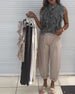 FUNKTIONER Denne ærmeløse top har en ensfarvet, og tilbyder et enkelt, men elegant look. Fraværet af ærmer gør den behagelig og perfekt til varmt vejr. Den klassiske turn-down krave tilføjer sofistikering til dens afslappede stil. Den subtile plissering bagpå forbedrer dens design uden at overvælde dens minimalistiske charme. Denne top er ...