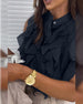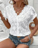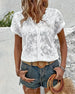Bluse Rund Hals Knapper Udsnit Kort Ærme
