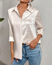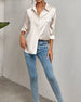 SPECIFIKATIONER Top type: Skjorte Stil: Afslappet Materiale: Bomuldsblanding Lejlighed: Daglig Halsudskæring: Revers Mønstertype: Ensfarvet Ærmetype: Almindeligt ærme Ærmelængde: Langærmet Pasform: Almindelig Sæson/årstid: Forår,Sommer,Efterår Detaljer: Spænde,Udhulende Pakken inkluderer: 1 x Skjorte STØRRELSESTABEL (cm) Størrelse Buste Læng...