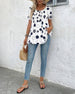 Bluse Med Korte Ærmer Falsk Lomme Print