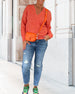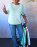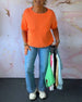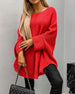 Sweater Ensfarvet Rund Hals Faldende Skulder