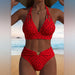 SPECIFIKATIONER Stil: Ferie Materiale: 15% Spandex,85% Polyester Lejlighed: Ferie Halsudskæring: Halsstrop Mønstertype: Prikket Ærmelængde: Uden ærmer Top type: Bikini BH Type: Stropløs BH Underdel type: Naturlig Pasform: Skinny Pakken inkluderer: 1 x Bikini STØRRELSESTABEL (cm) Størrelse Buste Talje Hofte Nedre buste S 88 73 96 73 M 92 ...