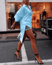 FUNKTIONER Lynlås bagpå: Den slanke lynlås bagpå tilføjer et moderne touch, hvilket gør det nemt at bære og tilbyder en sømløs pasform. Asymmetrisk design: Det uregelmæssige, asymmetriske snit giver et smart og moderne look, der adskiller dig fra mængden. Turn-down krave: Den klassiske turn-down krave tilføjer en tidløs elegance, velegnet ti...