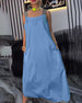 SPECIFIKATIONER Stil: Afslappet Materiale: 100% Bomuld Kjoletype: Shift-kjole Kjolelængde: Maxi Halsudskæring: U-udskæring Mønstertype: Ensfarvet Ærmelængde: Uden ærmer Detaljer: Patchwork,Lomme Pasform: Almindelig Sæson/årstid: Sommer Lejlighed: Daglig Pakken inkluderer: 1 x Kjole STØRRELSESTABEL (cm) Størrelse Buste Længde S 95 130 ...
