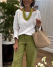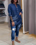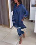 SPECIFIKATIONER Stil: Afslappet Top type: Skjorte Kategori: Sæt Materiale: Bomuldsblanding Halsudskæring: Ståkrave Ærmetype: Almindeligt ærme Ærmelængde: Trekvartærmet Buksetype: Lige ben Bukselængde: Lang Taljetype: Høj talje Pasform: Almindelig Sæson/årstid: Forår,Sommer Detaljer: Patchwork,Lomme Lejlighed: Daglig Pakken inkluderer: 1 x Skjo...