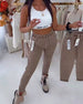 Bredebenede Bukser Med En Enkelt Farve, Casual Stil Og Trækrem