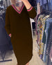SPECIFIKATIONER Stil: Afslappet Materiale: 100% Polyester Kjoletype: Shift-kjole Kjolelængde: Maxi Halsudskæring: Revers Mønstertype: Ensfarvet Ærmetype: Almindeligt ærme Ærmelængde: Langærmet Detaljer: Flænge Pasform: Løs Sæson/årstid: Forår, Efterår, Vinter Lejlighed: Daglig Pakken inkluderer: 1 x Kjole STØRRELSESTABEL (cm) St...