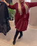 SPECIFIKATIONER Stil: Chic Materiale: 100% Polyester Kjoletype: A-linje Kjolelængde: Knælængde Halsudskæring: V-udskæring Mønstertype: Ensfarvet Ærmetype: Almindeligt ærme Ærmelængde: Langærmet Pasform: Almindelig Sæson/årstid: Efterår, Vinter Lejlighed: Daglig, Ferie Pakken inkluderer: 1 x Kjole STØRRELSESTABEL (cm) Størrelse ...