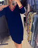 SPECIFIKATIONER Stil: Afslappet Materiale: 95% polyester, 5% spandex Kjoletype: Shift-kjole Kjolelængde: Knælængde Halsudskæring: V-udskæring Mønstertype: Geometrisk tryk Ærmetype: Almindeligt ærme Ærmelængde: Langærmet Pasform: Almindelig Sæson/årstid: Forår, Efterår, Vinter Lejlighed: Daglig Pakken inkluderer: 1 x Kjole STØRRELSESTABEL (...