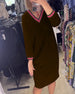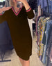 Ensfarvet Kjole Med Swingkrave Og Lappearbejde
