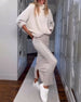 SPECIFIKATIONER Top type: Toppe Kjoletype: Cami Stil: Afslappet Materiale: 94% polyester, 6% spandex Lejlighed: Daglig Halsudskæring: Rund hals Mønstertype: Ensfarvet Ærmetype: Almindeligt ærme Ærmelængde: Langærmet Kjolelængde: Midi Pasform: Almindelig Sæson/årstid: Forår, Efterår, Vinter Pakken inkluderer: 1 x Top, 1 x Kjole STØRRELSESTA...
