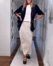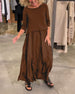 SPECIFIKATIONER Stil: Afslappet Top type: Bluser Kjoletype: Cami Materiale: Bomuldsblanding Halsudskæring: V-udskæring Ærmetype: Almindeligt ærme Ærmelængde: Kortærmet Kjolelængde: Maxi Pasform: Almindelig Sæson/årstid: Forår,Sommer,Efterår Detaljer: Snøre Lejlighed: Daglig Pakken inkluderer: 1 x Bluse, 1 x Kjole STØRRELSESTABEL (cm) Stør...
