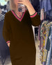 SPECIFIKATIONER Stil: Afslappet Materiale: Bomuldsblanding Kjoletype: A-linje Kjolelængde: Over knæet Halsudskæring: V-udskæring Mønstertype: Ensfarvet Ærmetype: Almindeligt ærme Ærmelængde: Langærmet Detaljer: Snøre Pasform: Almindelig Sæson/årstid: Efterår,Vinter Lejlighed: Daglig Pakken inkluderer: 1 x Kjole STØRRELSESTABEL (cm) Stør...