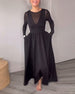 Kjole Med V-Udskæring Kædeknapper Og Meshpatchwork