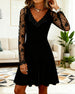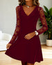SPECIFIKATIONER Stil: Elegant Materiale: Polyester Kjoletype: Shift-kjole Kjolelængde: Knælængde Halsudskæring: V-udskæring Ærmetype: Lanterneærmet Ærmelængde: Langærmet Detaljer: Patchwork, Gennemsigtig Pasform: Almindelig Sæson/årstid: Forår, Sommer, Efterår Lejlighed: Daglig Pakken inkluderer: 1 x Kjole STØRRELSESTABEL (cm) Størrelse...