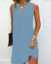 SPECIFIKATIONER Stil: Afslappet Materiale: 100% Polyester Kjoletype: Shift-kjole Kjolelængde: Knælængde Halsudskæring: V-udskæring Mønstertype: Ensfarvet Ærmelængde: Uden ærmer Pasform: Almindelig Sæson/årstid: Forår, Sommer, Efterår Lejlighed: Daglig Pakken inkluderer: 1 x Kjole STØRRELSESTABEL (cm) Størrelse Buste Længde Skulder...