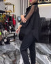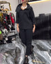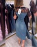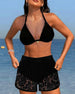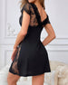 Todelt sæt - Sort top med blondeærmer og blondenederdel