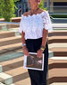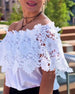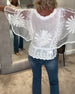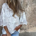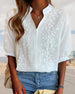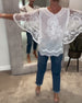 Bluse Sommerfuglsærme Rund Hals Broderet