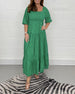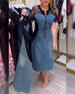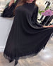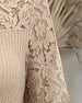 Ensfarvet kjole med V-halsudskæring og blondeærmer