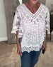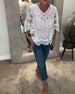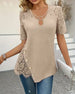 Bluse afslappet v-udskæring blondepanel med leopardprint