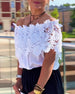Ensfarvet slim fit off-shoulder sweater med blonder