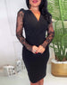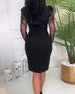 Slim fit kjole med mønstrede, gennemsigtige ærmer
