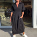 SPECIFIKATIONER Stil: Afslappet Materiale: 80% Polyester, 20% Bomuld Kjoletype: A-linje Kjolelængde: Maxi Halsudskæring: Revers Mønstertype: Ensfarvet Ærmetype: Almindeligt ærme Ærmelængde: Halve ærmer Detaljer: Lomme Pasform: Almindelig Sæson/årstid: Efterår,Vinter Lejlighed: Daglig Pakken inkluderer: 1 x Kjole STØRRELSESTABEL (cm) Stø...