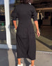 SPECIFIKATIONER Stil: Elegant,Forretning/Business Materiale: 50% Polyester, 45% Kunstig Bomuld, 5% Spandex Kjoletype: A-linje Kjolelængde: Midi Halsudskæring: Rund hals Mønstertype: Ensfarvet Ærmetype: Almindeligt ærme Ærmelængde: Langærmet Detaljer: Rynket Pasform: Almindelig Sæson/årstid: Forår,Efterår,Vinter Lejlighed: Daglig Pakken inklud...