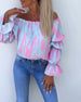 SPECIFIKATIONER Top type: Toppe Stil: Afslappet Materiale: 3% Spandex,97% Polyester Lejlighed: Daglig Halsudskæring: Off-shoulder Mønstertype: Tryk Ærmetype: Lanterneærmet Ærmelængde: Langærmet Pasform: Almindelig Sæson/årstid: Forår, Sommer, Efterår Detaljer: Rynket Pakken inkluderer: 1 x Top STØRRELSESTABEL (cm) Størrelse Buste L...