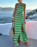SPECIFIKATIONER Stil: Ferie Materiale: Bomuldsblanding Kjoletype: A-linje Kjolelængde: Maxi Halsudskæring: Halsstrop Mønstertype: Tryk Ærmelængde: Uden ærmer Detaljer: Snøre op Pasform: Almindelig Sæson/årstid: Sommer Lejlighed: Daglig Pakken inkluderer: 1 x Kjole STØRRELSESTABEL (cm) Størrelse Buste Længde S 95 130 M 100 131 L 105 132...