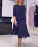 SPECIFIKATIONER Stil: Afslappet Materiale: A: 100% Polyester, B: 97% Polyester, 3% Spandex Kjoletype: Shift-kjole Kjolelængde: Midi Halsudskæring: Rund hals Mønstertype: Prikket Ærmetype: Flænge-ærmer Ærmelængde: Trekvartærmet Pasform: Almindelig Sæson/årstid: Forår,Efterår Lejlighed: Daglig Pakken inkluderer: 1 x Kjole STØRRELSESTABEL (cm...