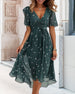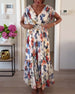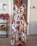 SPECIFIKATIONER Stil: Elegant Materiale: 3% Spandex,97% Polyester Kjoletype: A-linje Kjolelængde: Midi Halsudskæring: V-udskæring Mønstertype: Blomster-(garment type), Tryk Ærmetype: Puf-ærmer Ærmelængde: Kortærmet Detaljer: Knapper, Flænge Pasform: Almindelig Sæson/årstid: Forår, Sommer, Efterår Lejlighed: Daglig Pakken inkluderer: 1 x Kjole...