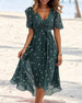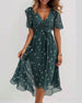 FUNKTIONER Elegant V-halsdesign: Det elegante V-halsdesign fremhæver perfekt den charmerende halslinje og tilføjer et strejf af elegance og charme til det overordnede look. Udsøgte prints: De unikke og udsøgte prints er som kunstværker, der pynter på nederdelen, hvilket gør dig til fokus, uanset hvor du går, og viser din modesmag. Smarte knu...