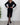 Kortærmet sort kjole med V-udskæring og lommer
